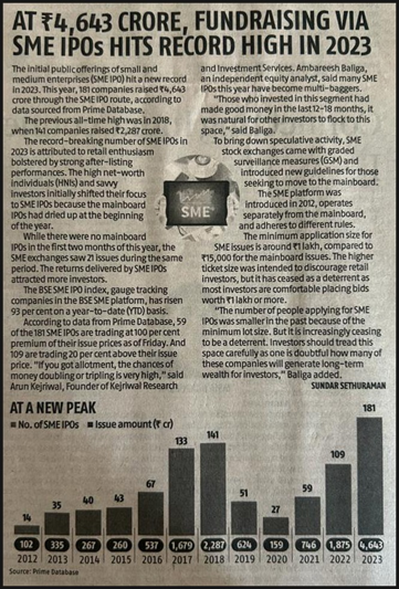 SMEs have collectively raised ~INR 13,500 Cr. through 900 IPOs over 12 years, with ~INR 4,700 Cr. in CY 2023 alone